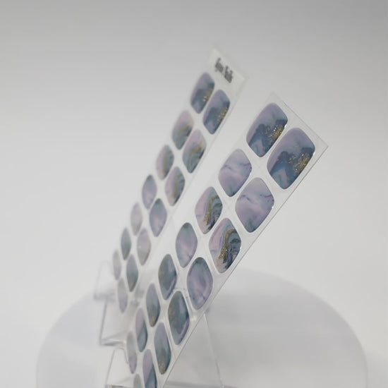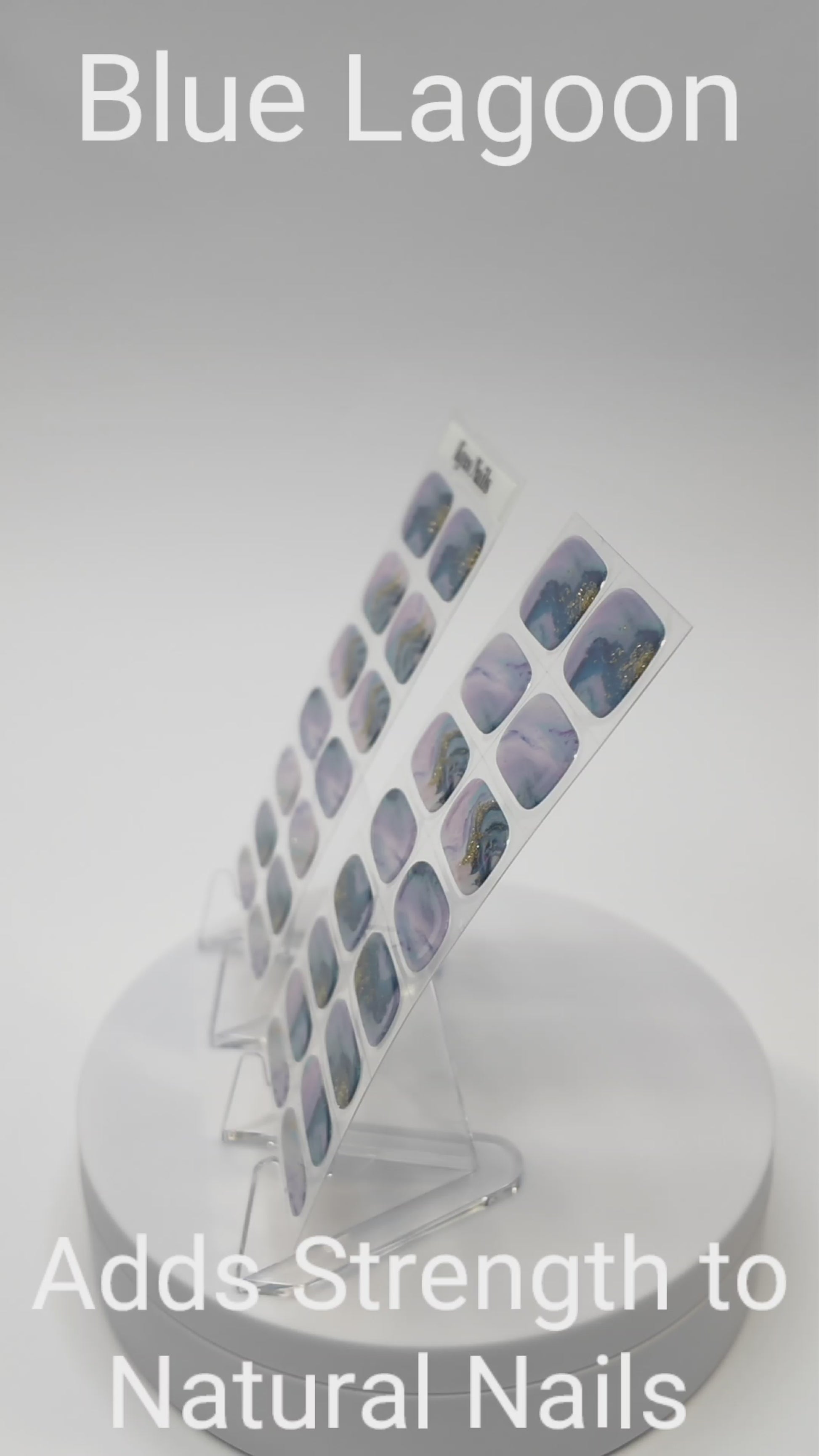 Our Blue Lagoon gel polish wraps are a delicate fusion of pastel artistry and sheer elegance. These gel wraps feature a soft, ethereal swirl of blush pinks, lavender purples and sky blues, kissed with whispers of gold foil for a touch of understated luxury.