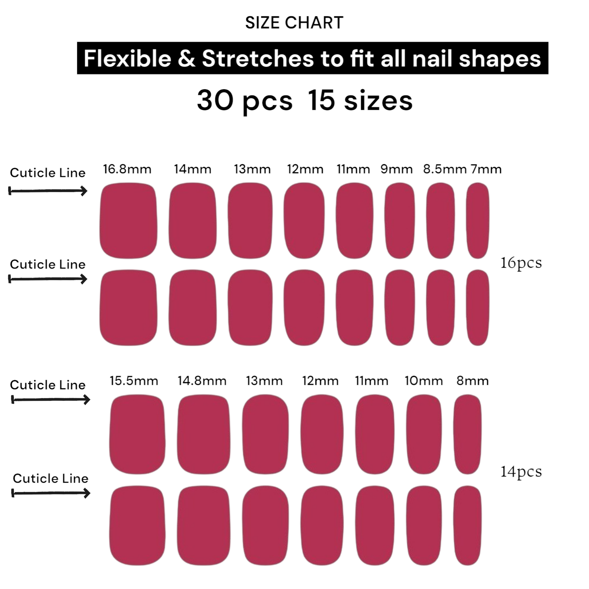 This DIY solution requires no special skills and provides fast application compared to traditional gel polish. Our wraps are pre-sized, flexible and ready to apply, eliminating the need for complicated painting techniques.