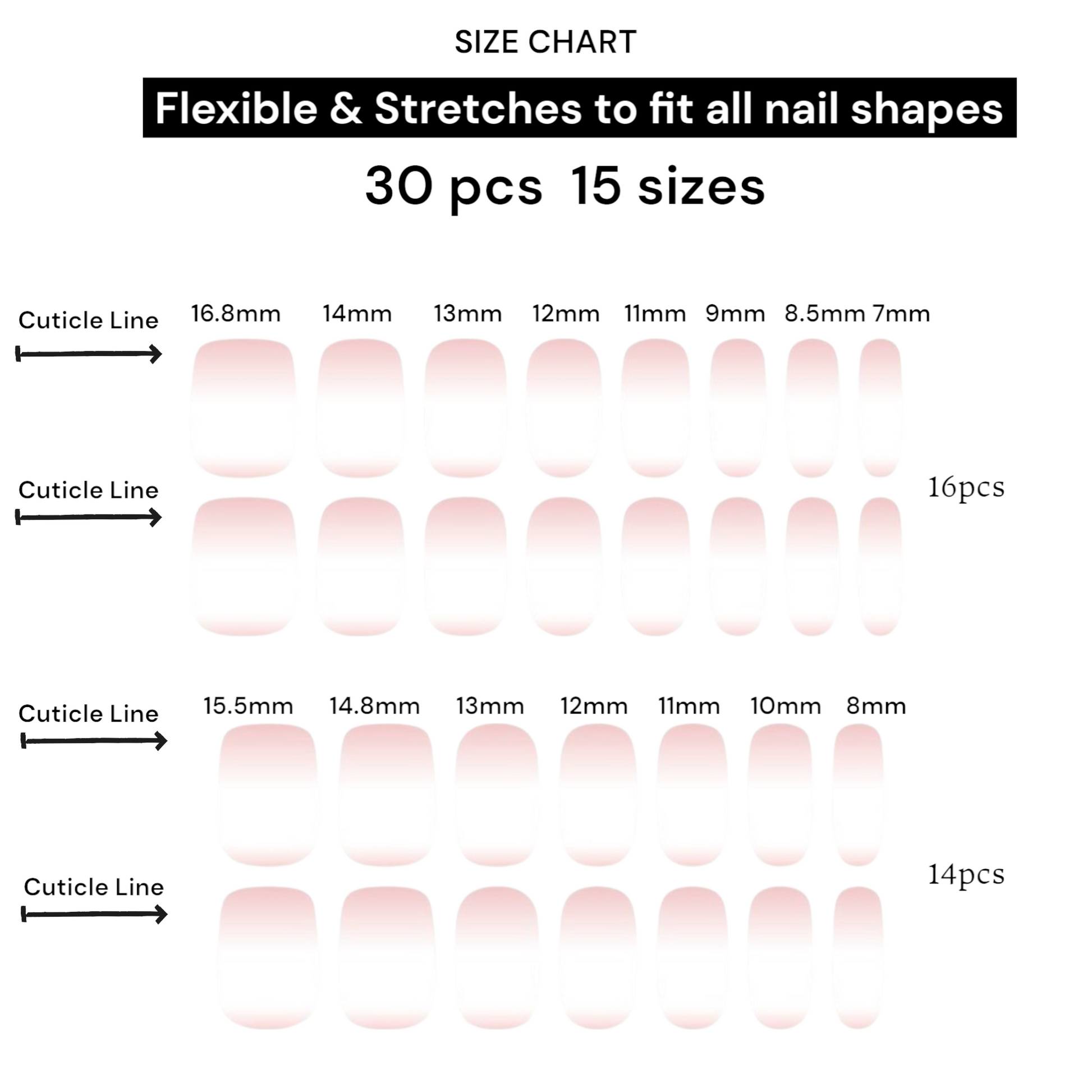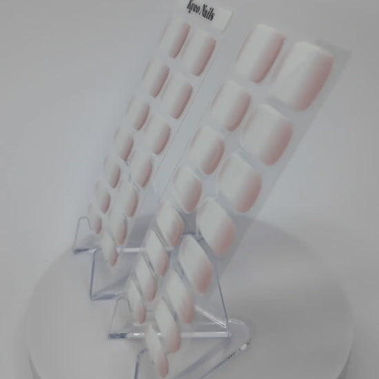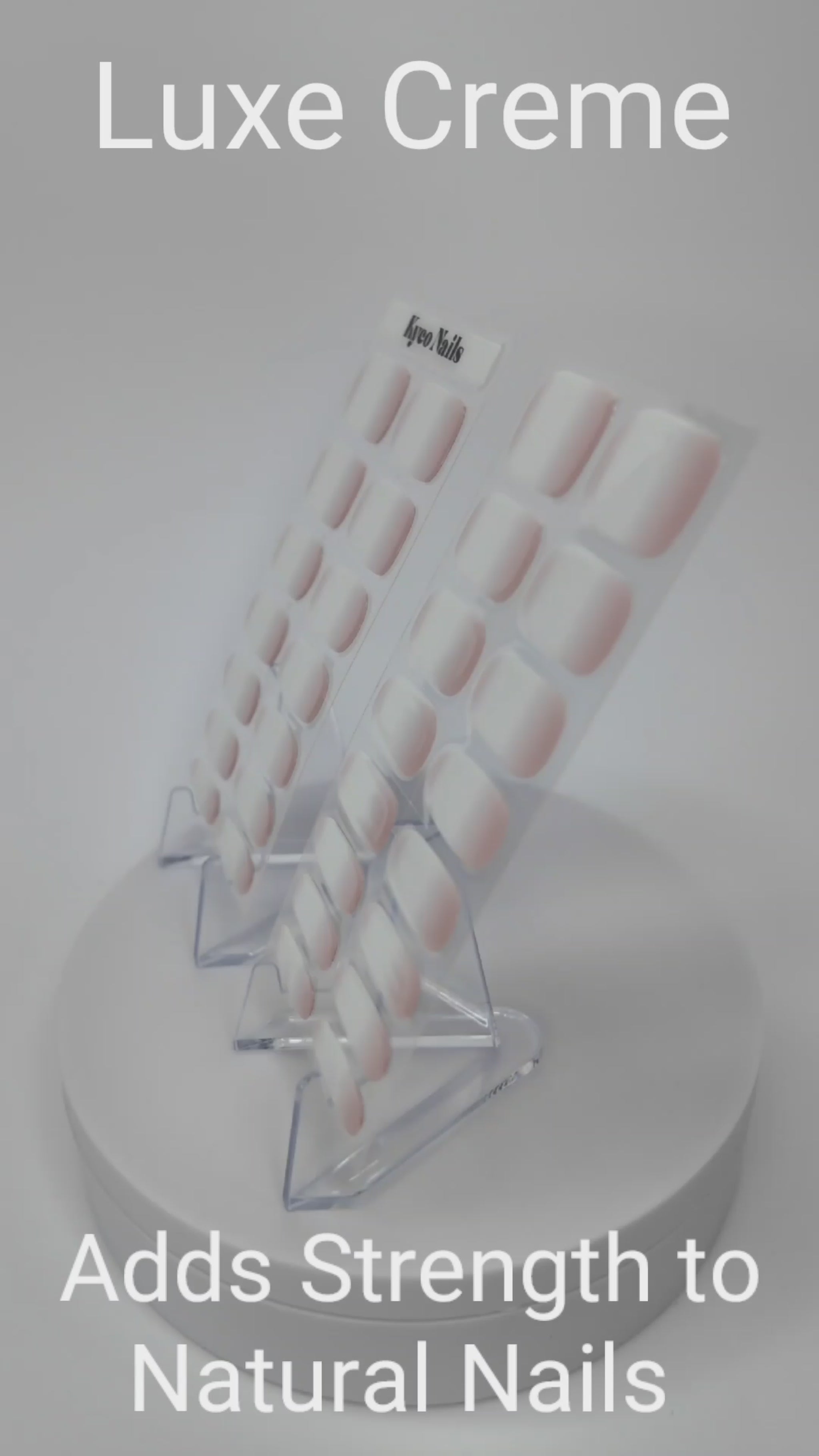 Our Luxe Crème gel nail polish wraps feature a delicate ombre gradient that transitions seamlessly from a soft, pale pink at the base to a creamy, milky white at the tips. The effect is effortlessly elegant, evoking the timeless charm of a French manicure, but with a modern, minimalist twist. The subtle fade enhances the natural nail silhouette, making it perfect for a clean girl aesthetic or an everyday polished look.