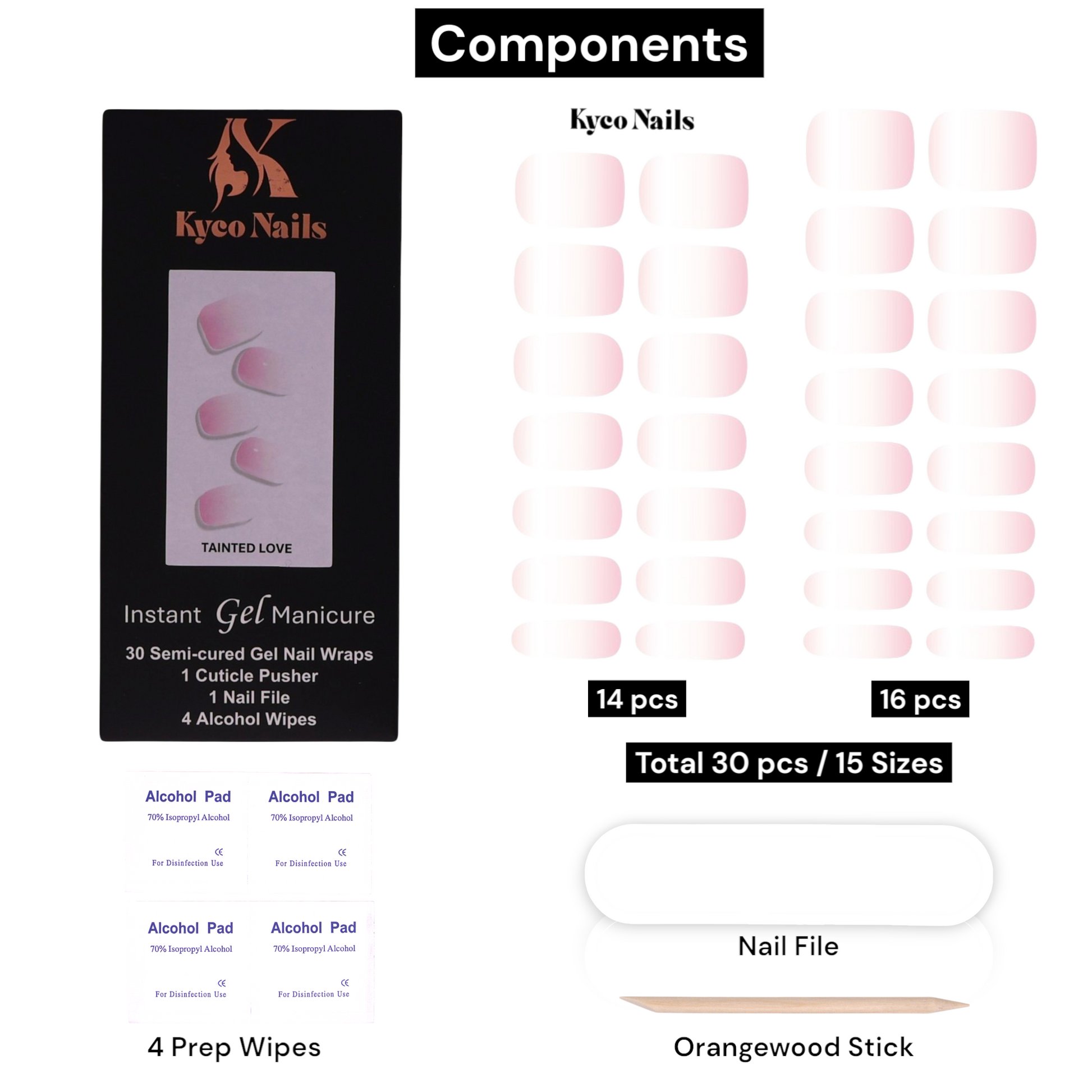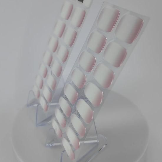 Elevate your manicure with our 'Tainted Love' gel polish wraps. A romantic blush to white ombre designed for effortless elegance. This soft gradient nail wrap blends timeless femininity with a modern edge. Perfect for those who love minimalist nail art with a twist.